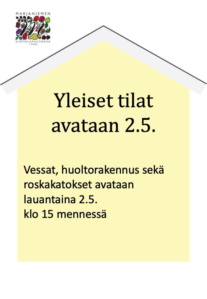 Yleiset tilat avataan 2.5.